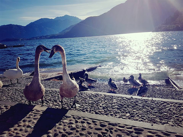 A Lenno nous nous sommes promenés le long du lac à gauche quand vous descendez du ferry à Lenno, en direction de la très fameuse Villa Balbianello. Nous avons été accueillis par des canards, oies et cygnes :) Juste parfait.